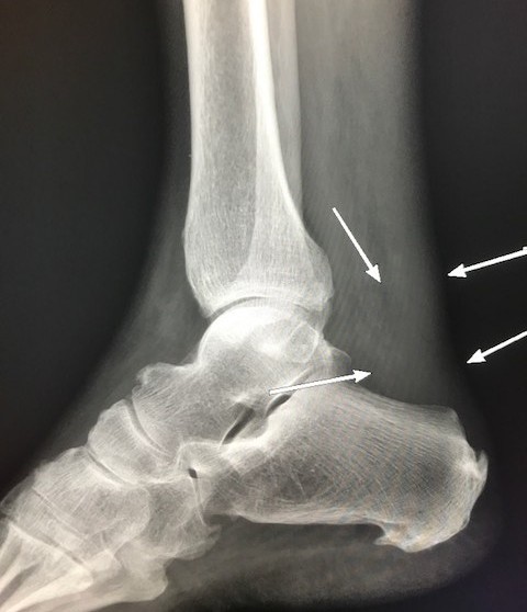 A plain X-ray film may identify problems with the bones or ankle joint, but it cannot diagnose Achilles tendon problems.