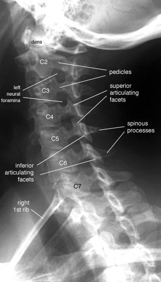 It is easiest mean to image the spine.X-ray reveals alignment and degenerative changes of the bones.The spaces for the discs are seen as well, but no pictures are seen of the spinal cord,nerves or actual disc material. Unsuspected bony pathology, such as fractures,dislocations and cancer metastases, are quickly identified with X-ray.