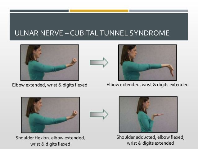 Physiotherapist can recommend home exercises like nerve gliding exercises for the arm and hand can also help to ease pain associated with cubital tunnel syndrome.