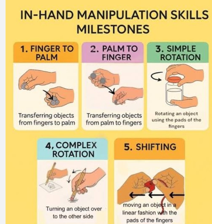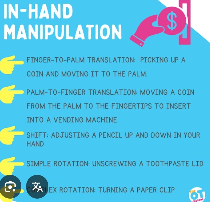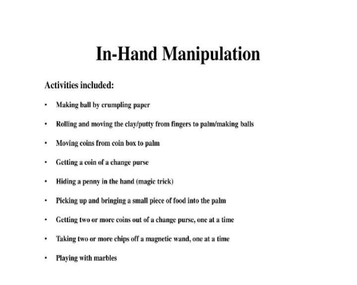 β’ Use two hands to accomplish specific tasks, e.g.one hand holding and the other moving (unscrewing lid of jar)