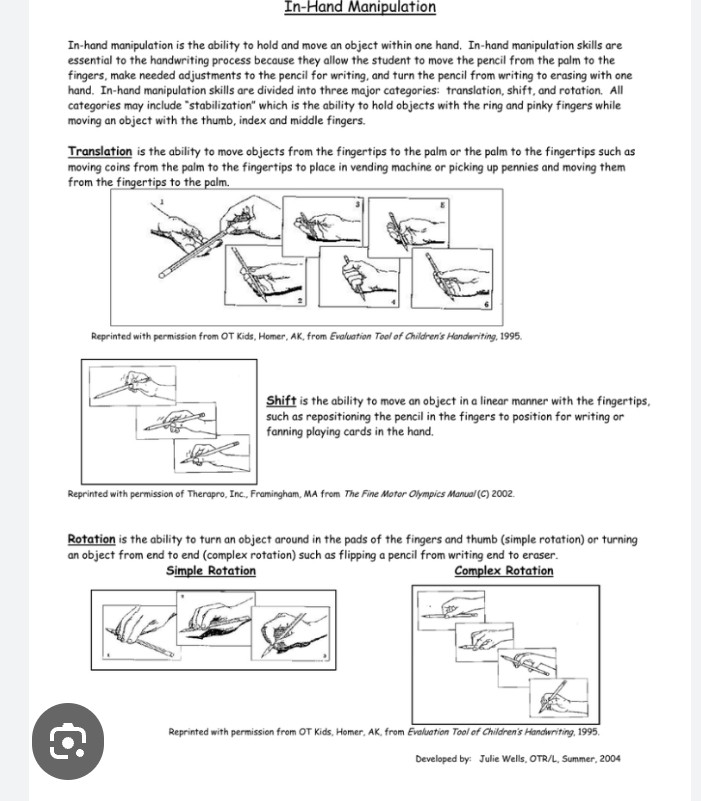 β’ Move objects within the hand.