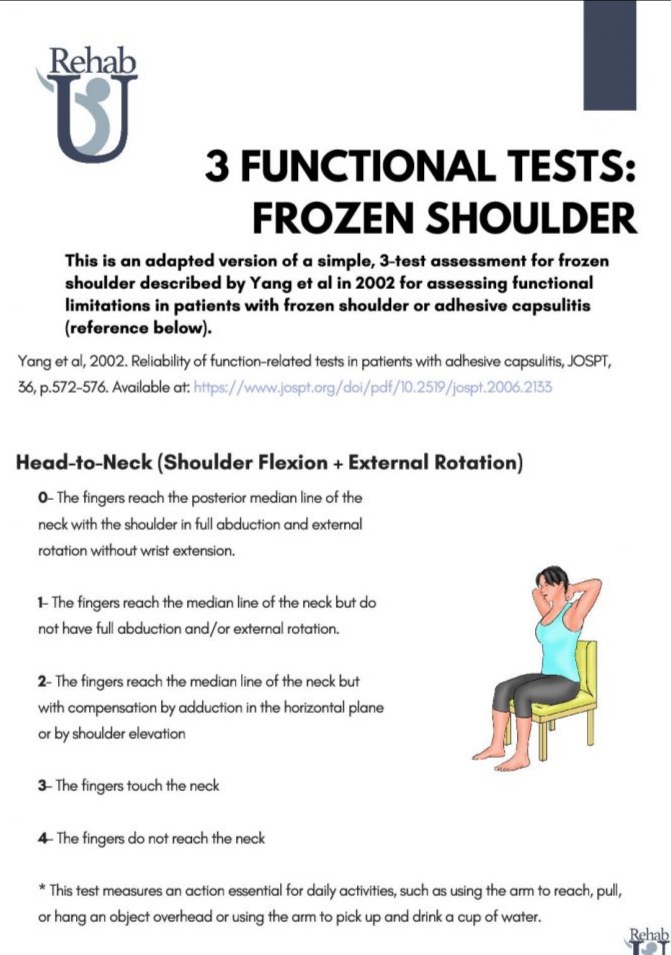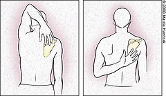 It involves one arm abducting, and externally rotating with the fingers pointing down the spine reaching as far behind you as you can, like reaching to scratch your back.