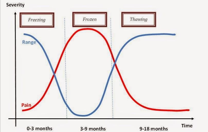 There really is no special test or diagnostic test, like an x-ray, for a frozen shoulder. The diagnosis is made by observation of the mobility of your shoulder. Usually, a painful loss of motion while lifting your arm forward, out to the side, and through rotation indicates a frozen shoulder.